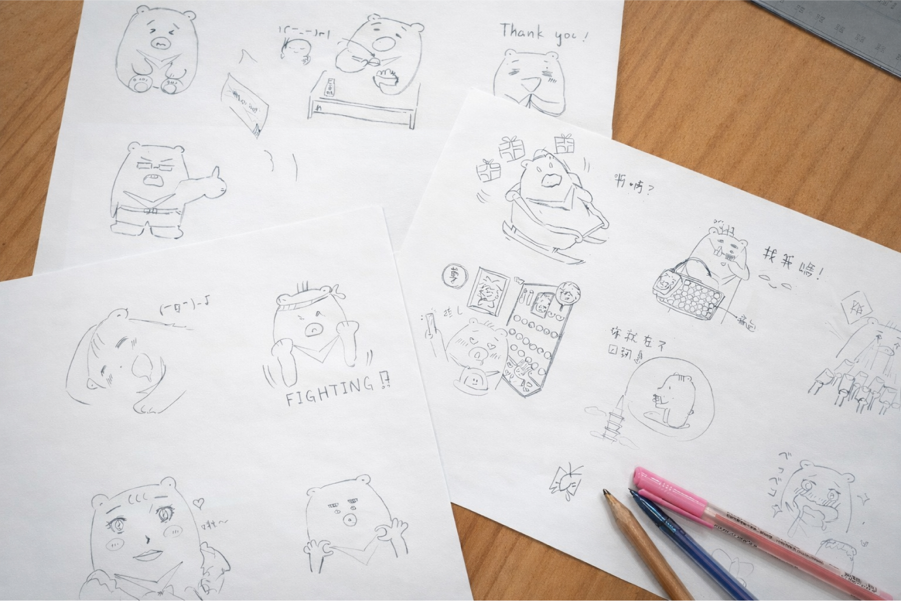 手繪草圖創意發想,先把腦袋裡的各種表情通通畫在紙上。