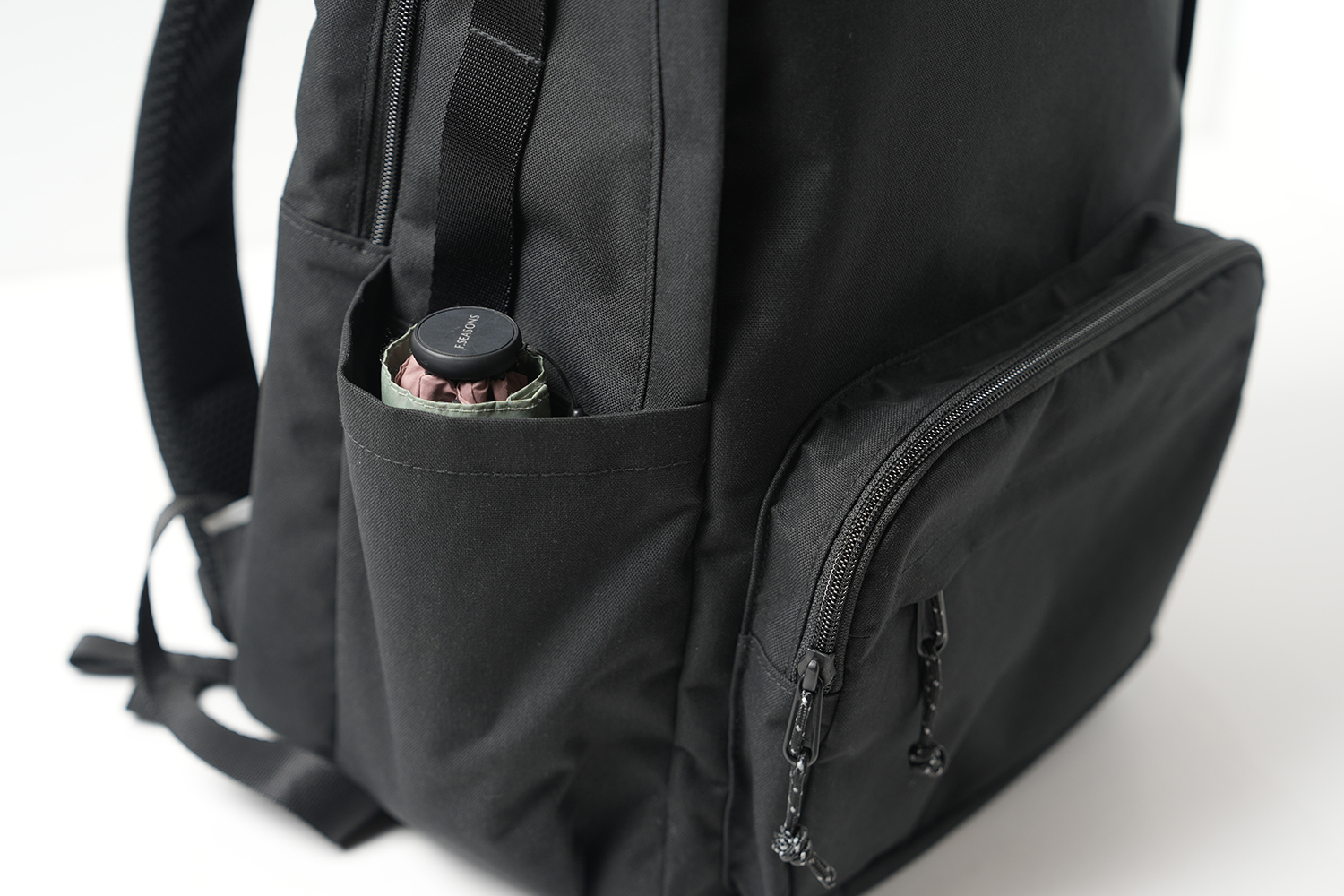 兩側口袋,深度夠,放置水壼雨傘不易掉出更安心。