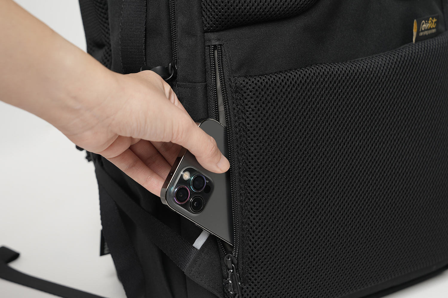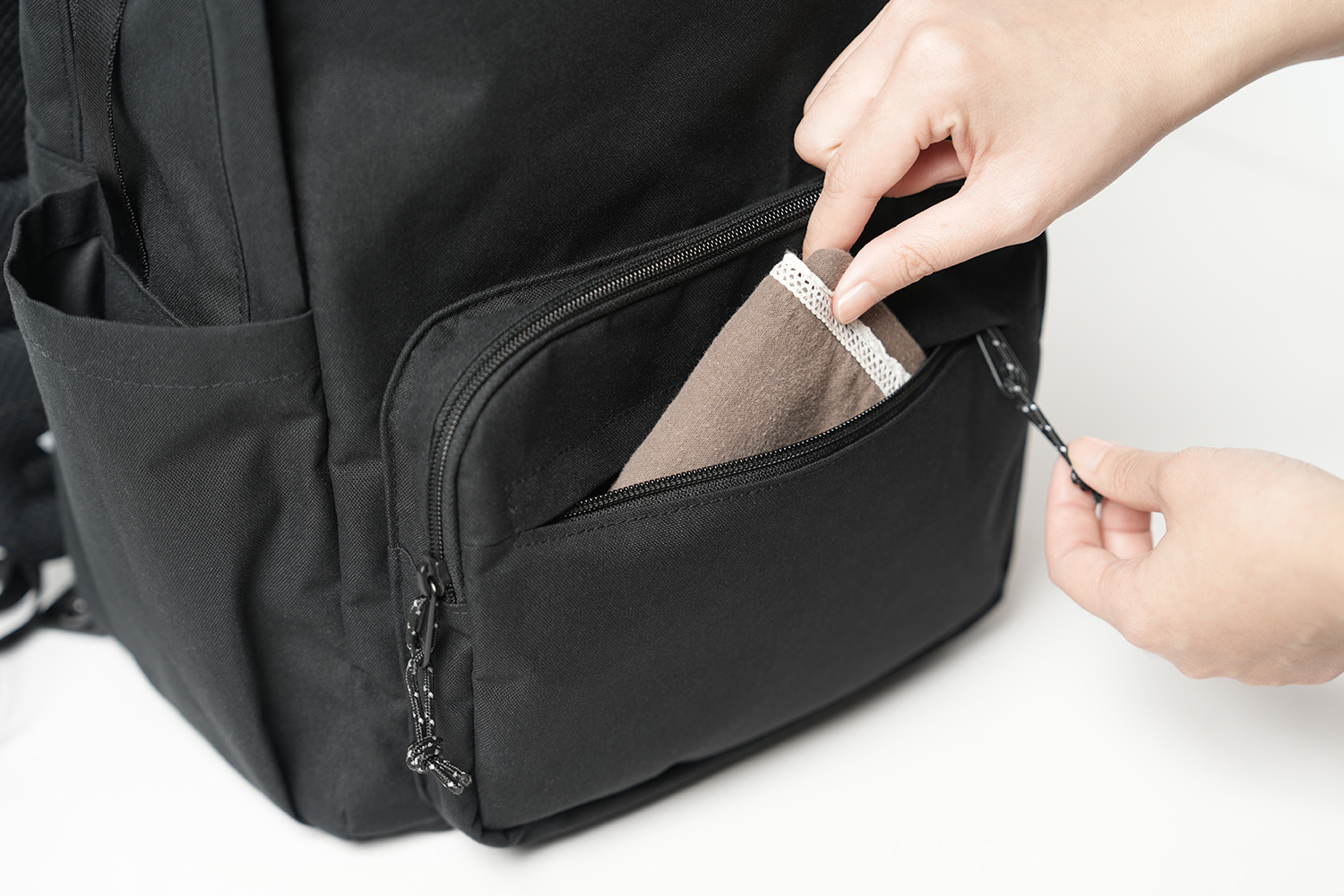 ➊ 前方快取小物袋:可收納需要隨手好拿的物品,背包滑至胸前,即可隨手取物。