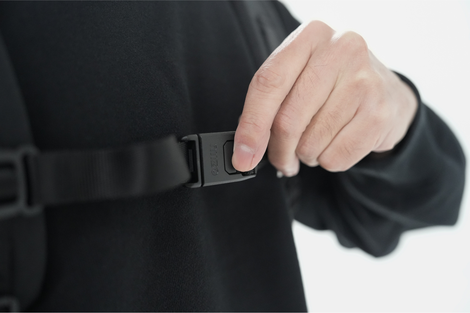 可拆式niizo磁吸胸扣,扣上時能將後背包穩定的貼在後背上,背負更省力。