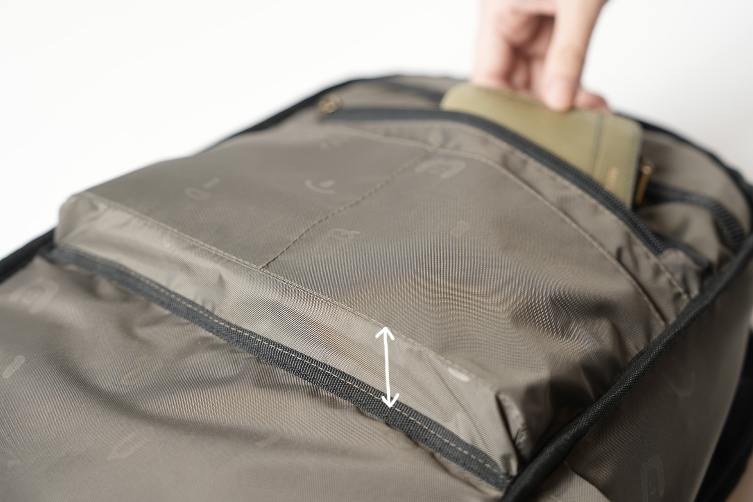 兩側也有筒型夾層,水壼、太陽眼鏡或雨傘想放包內也有專屬的收納空間。