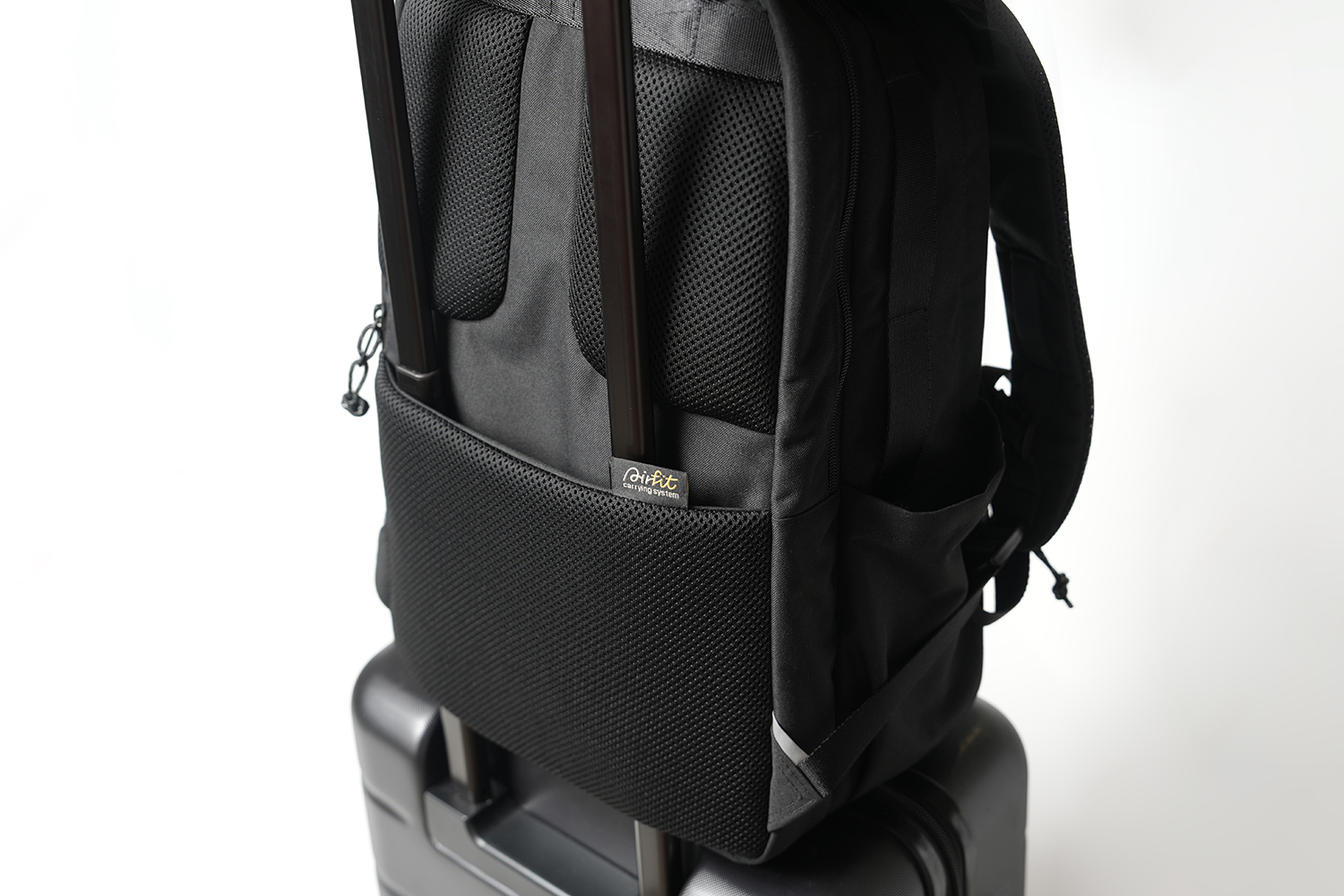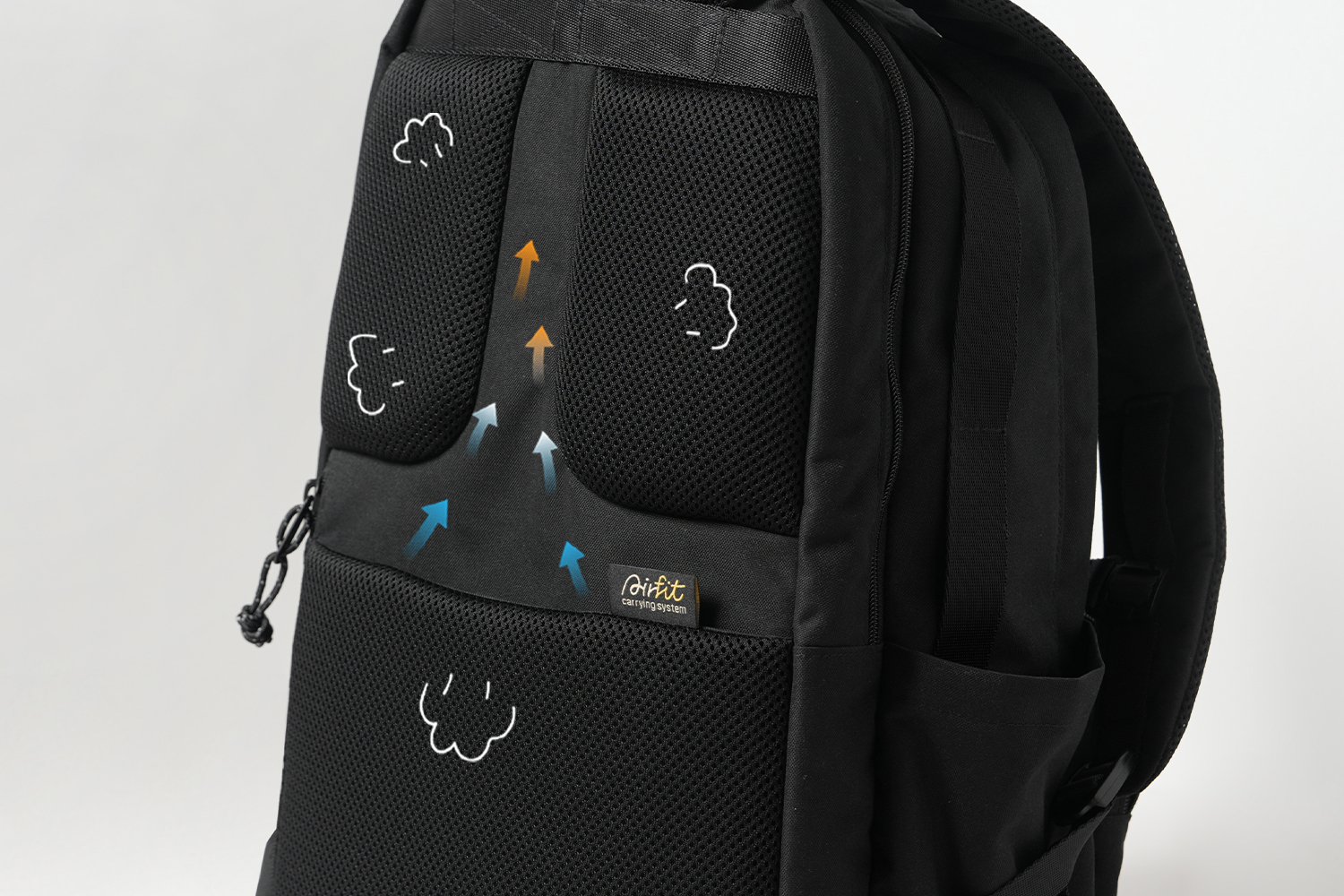 ・背部 AirMesh透氣網布 + 高中低散熱道設計。