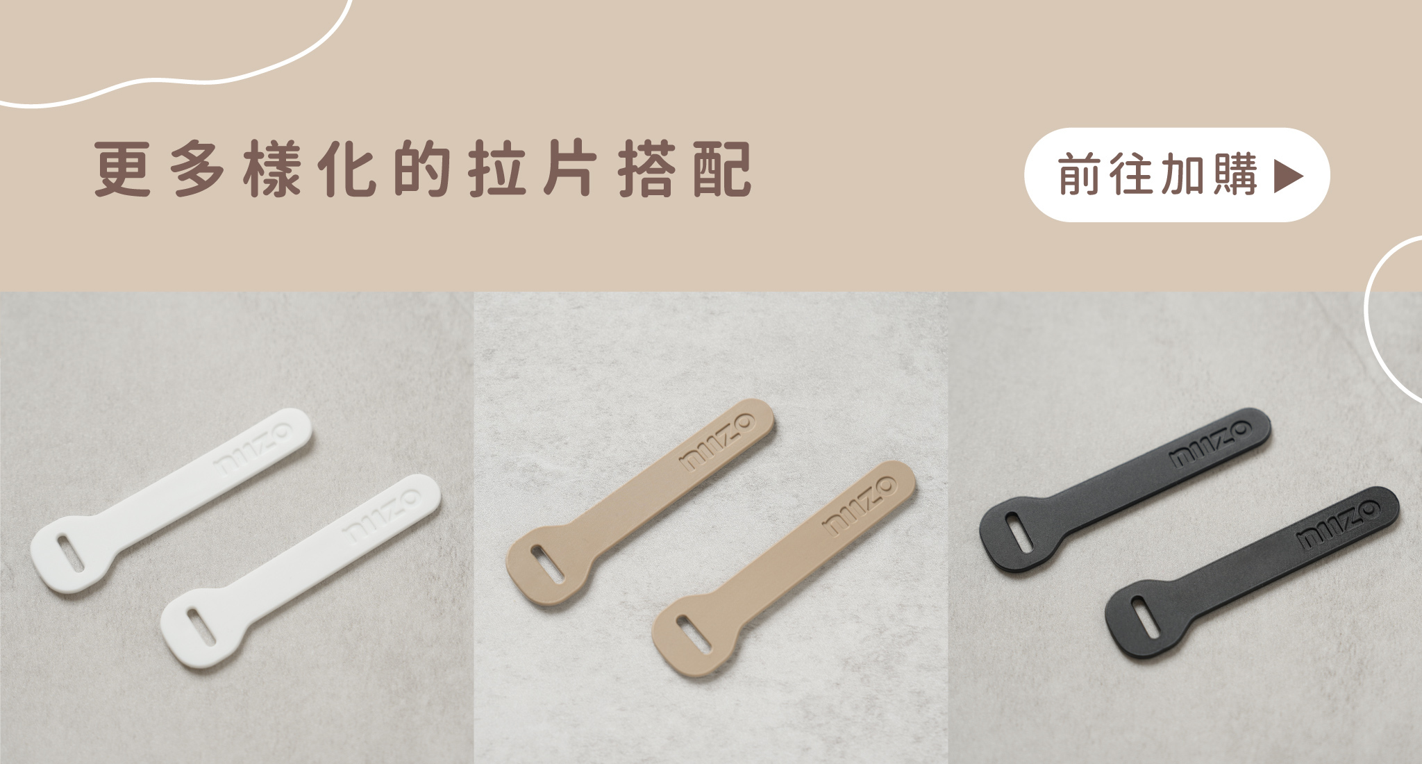 TPU拉鍊拉片,韌性強耐用度高,還可自行替換,不必擔心像一般拉鍊頭斷掉得換整個拉鍊。