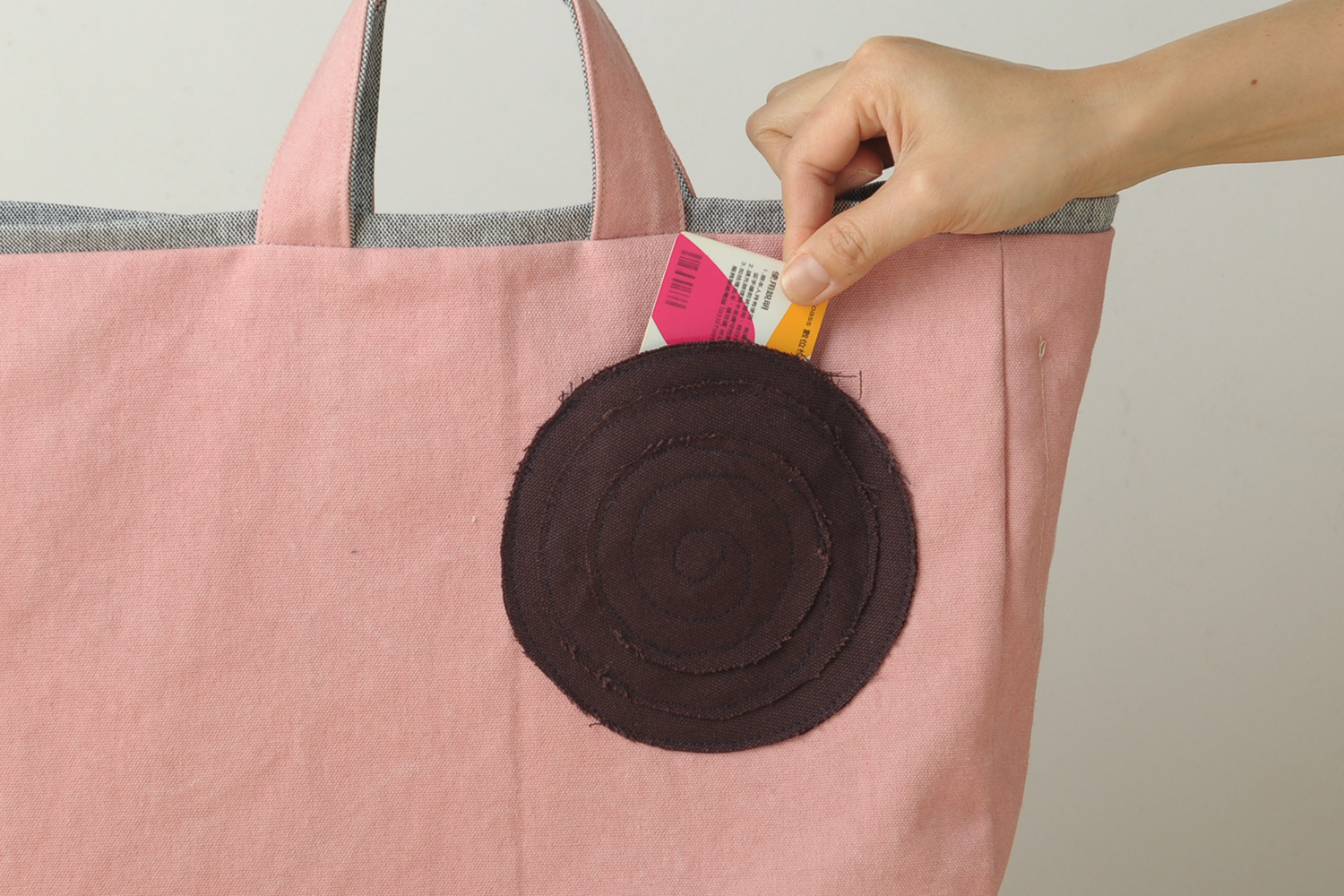 圓圓的月亮造型口袋很搶眼,運用自由曲線車縫有點挑戰性又能玩出個人特色。