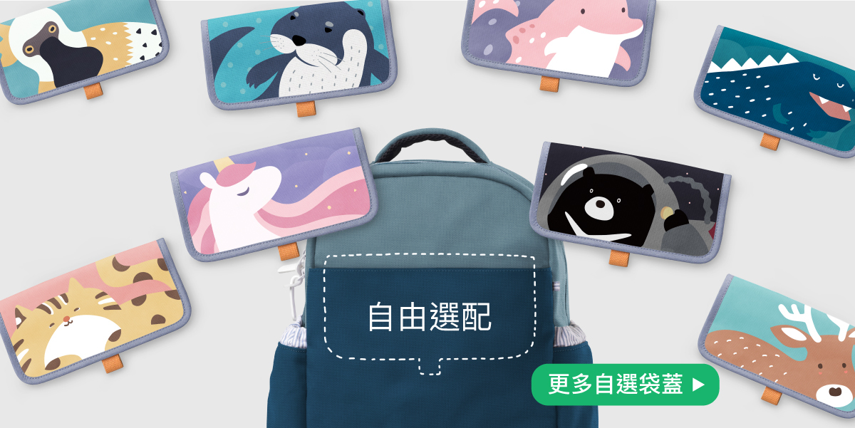 主袋身有專為孩子設計的四大收納空間,不多不少剛剛好,簡單明瞭的開放口袋,讓孩子學習收納不挫折。