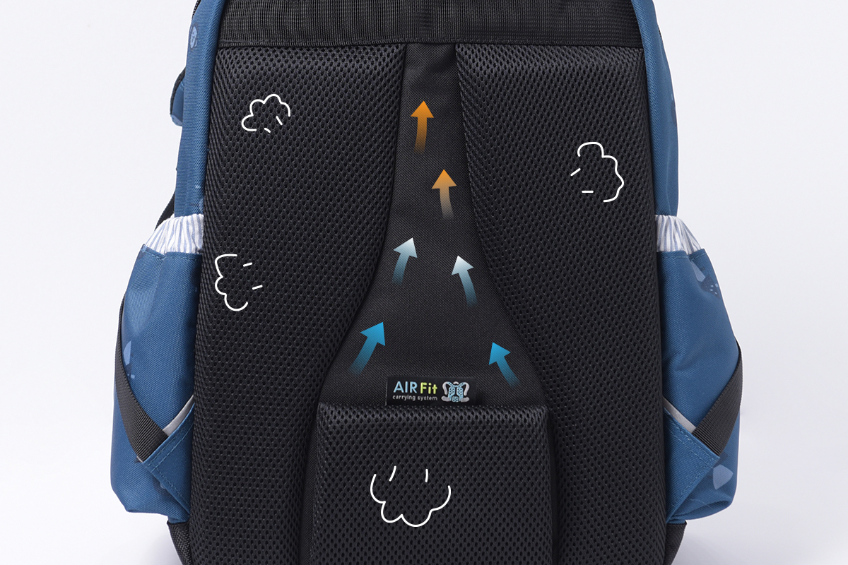 全新AirFit背負系統設計,給孩子最完整的護脊方案,超輕量化包體結構、專為亞洲學童量身打版超貼身3D立體肩帶、可調式德國磁性胸扣、全背部AirMesh透氣網布+散熱道設計,如果孩子有更多減重的需求,還可以加裝專用的減重腰帶 (