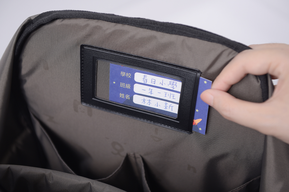 可置換姓名卡,孩子換班級,書包換給弟弟妹妹,只要換一張新卡片即可,不必塗塗改改。 ( 隨書包贈送2張雙面不同圖案的姓名卡 )