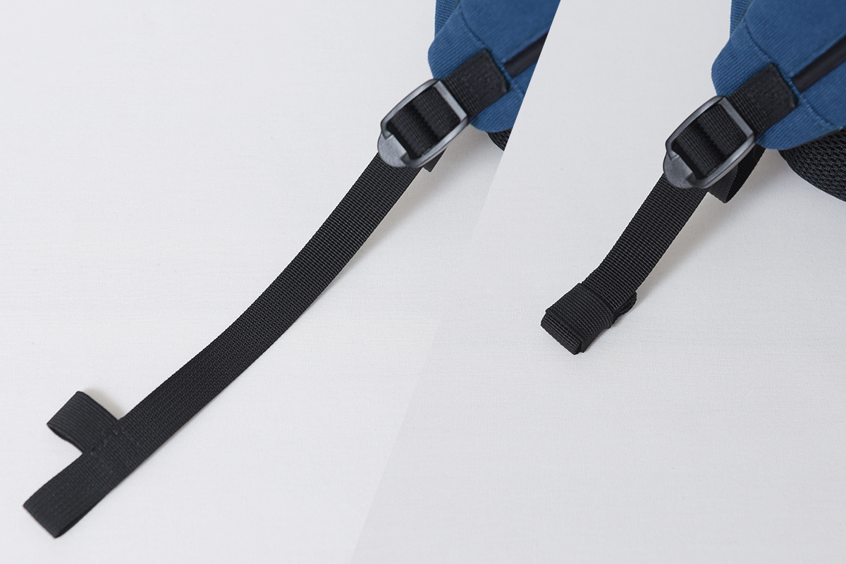 一般調整織帶都會容易鬆動,孩子通常不會主動拉緊,針對孩子的需求特別加了止滑日環配件,調好長度就不會再移動。