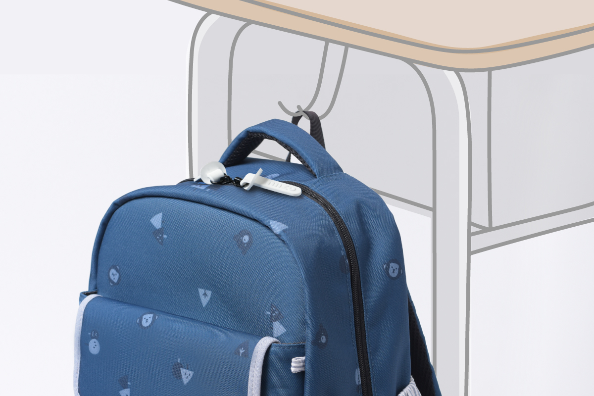 桌邊吊掛織帶設計,適合台灣小學的課桌椅。